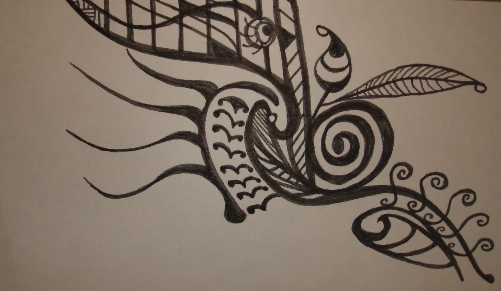 I like to do sharpie black drawings on white paper, as well watercolor, I tend to focus more on design aspects, instead of shading and tones. This one looked like a happy, abstract crab, ready to jump out at ya!